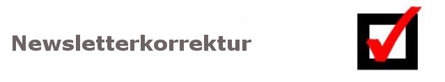 | | Fehler passieren. Sie hinterlassen aber oft einen faden Beigeschmack oder sind einfach nur peinlich. Erst recht, wenn sie hundertfach oder gar tausendfach verschickt werden. Wir haben etwas gegen fehlerhafte Newsletter ... Genau hier können Sie schnell und einfach die Korrektur Ihres Newsletters in Auftrag geben. Je nach gewähltem Tarif erhalten Sie ihn innerhalb von 2 Stunden, 4 Stunden, 24 Stunden, 48 Stunden, 72 Stunden oder 5 Arbeitstagen zurück. Noch kein Kundenkonto? Jetzt schnell und bequem REGISTRIEREN ... Kopieren Sie Ihren Newslettertext in folgenden Bereich und klicken Sie anschließend unten auf „Preis berechnen“: | |